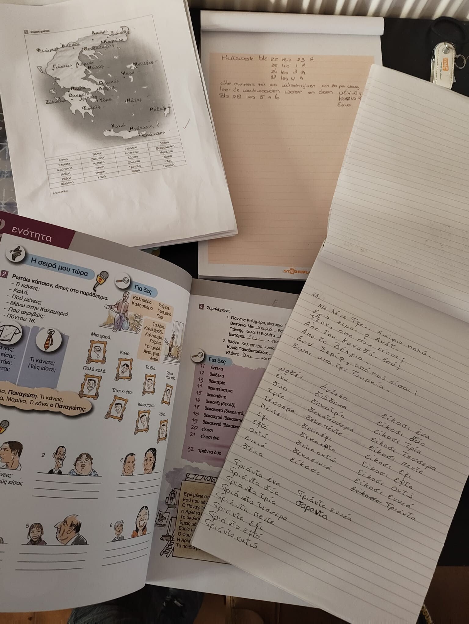 Na thuiskomst kon ik eigenlijk meteen weer op weg naar de podoloog want dat was om 15 uur. Binnen een uurtje was alles opgemeten en besteld en over 10 dagen heb ik mijn op maat gemaakte steunzolen. Hierna ben ik in Korinthe blijven wachten tot het tijd was voor mijn Griekse les anders blijf ik heen en weer rijden. Het was weer erg gezellig en natuurlijk weer een berg huiswerk mee zodat ik mij tot maandag niet hoef te vervelen π«£